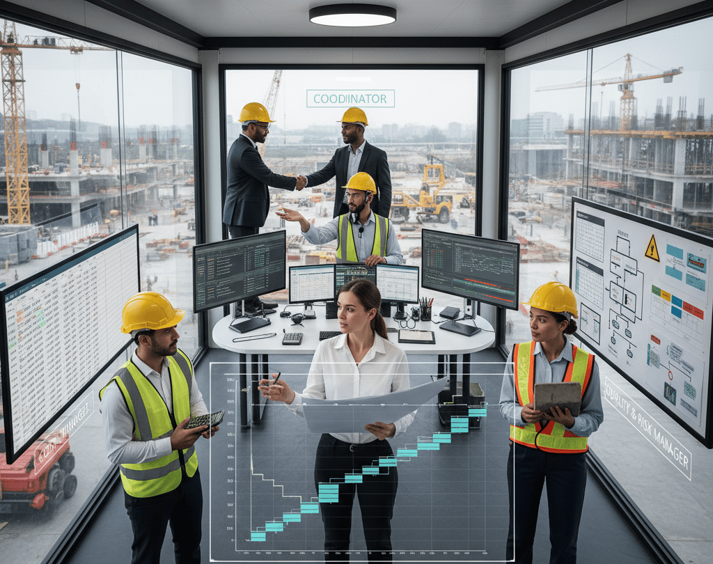We act as the central link between clients, consultants, contractors, and suppliers — ensuring transparent communication, efficient coordination, and timely decision-making throughout the project lifecycle.